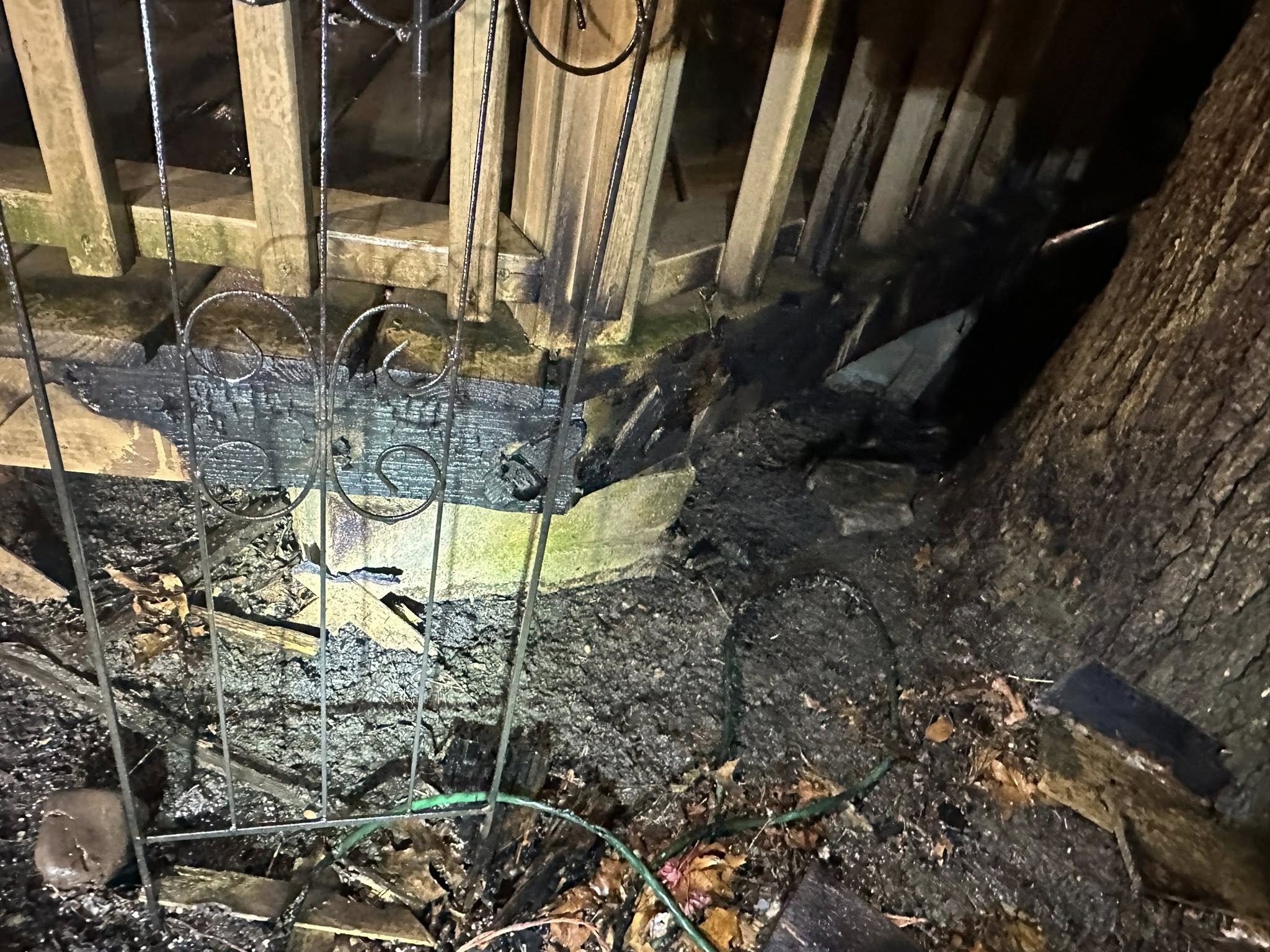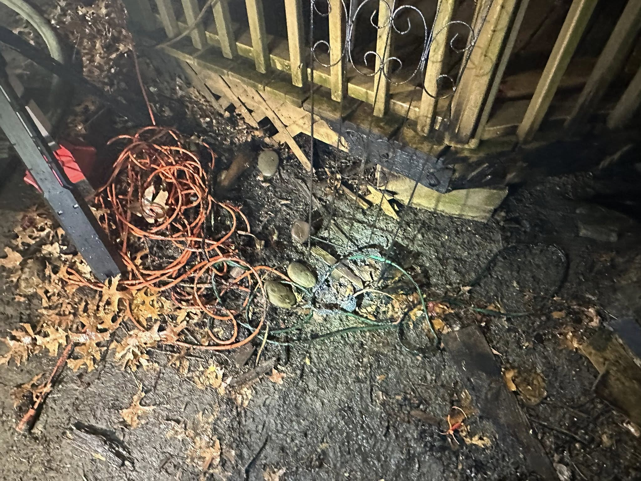 South units along with Mutual Aid responded on the overnight hours for a brush fire to the rear of a residence on Clinton St. Squad 5 with 4 arrived to find a moderate brush fire to the rear extending to a fence, gazebo, and wood line. Fire was quickly knocked with a handline off of Engine 1. Investigation found several extension cords and surge protectors piggy backed off each other causing one cord to malfunction and started leaves and pine needles on fire spreading to the gazebo, under the fence, catching the fence, and small wood line.